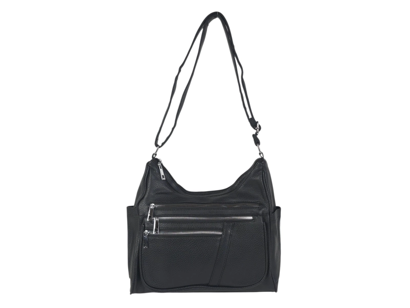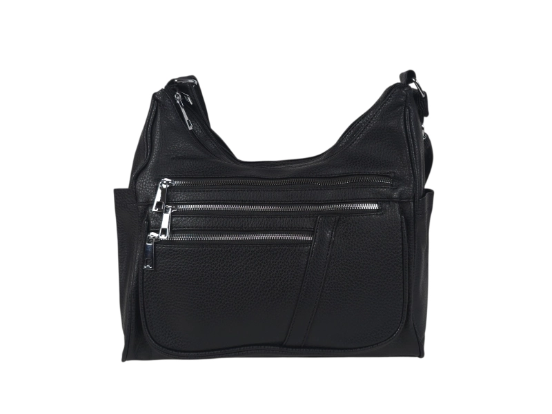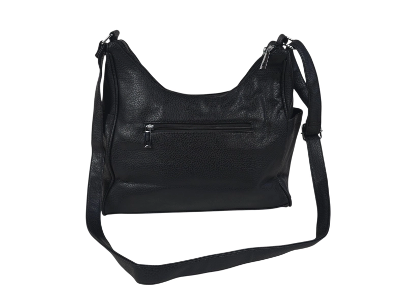Geantă confortabilă - Geantă de mână din piele ecologică. - Două compartimente principale cu fermoar - Buzunar interior mic cu fermoar. - Trei buzunare frontale cu fermoar. - Buzunar spate cu fermoar. - Două buzunare laterale. - Mâner lung reglabil.