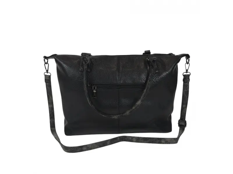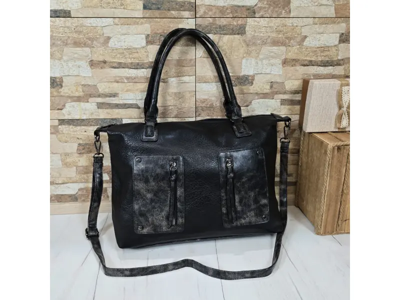 Geantă de mână de zi cu zi - Geantă de mână din piele ecologică. - Un compartiment cu închidere cu fermoar. - Două buzunare interioare mici cu fermoar. - Buzunar interior mic, fără fermoar. - Compartimente pentru telefon și documente. - Două buzunare frontale cu fermoar. - Buzunar spate cu fermoar. - Mânere confortabile pentru transport. - Mâner lung reglabil.