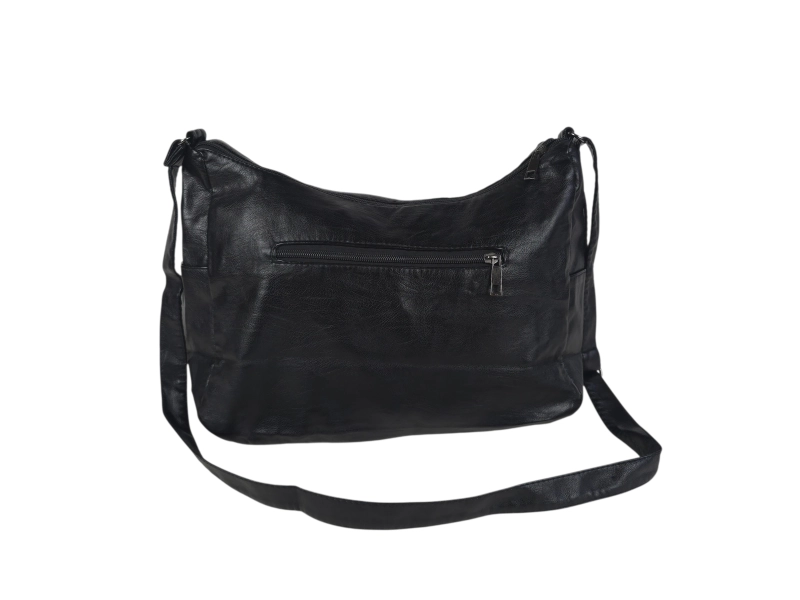 Geantă mare din piele ecologică, moale la atingere. Geantă de umăr de zi cu zi, cu multe compartimente. Geantă neagră cu mâner lung reglabil.