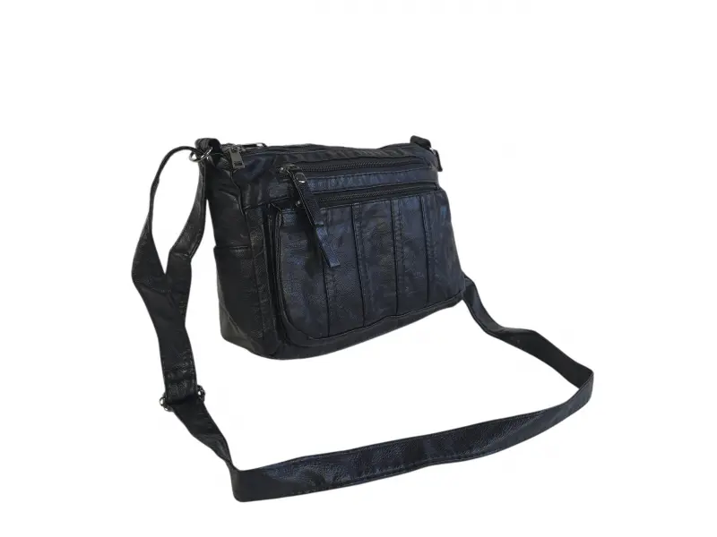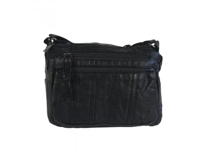 Geantă de mână moale la atingere - Geantă de damă din piele artificială. - Două compartimente principale cu fermoar. - Buzunar interior mic cu fermoar. - Două buzunare frontale cu fermoar. - Două buzunare laterale mici. - Buzunar spate cu fermoar. - Mâner lung și reglabil, confortabil.