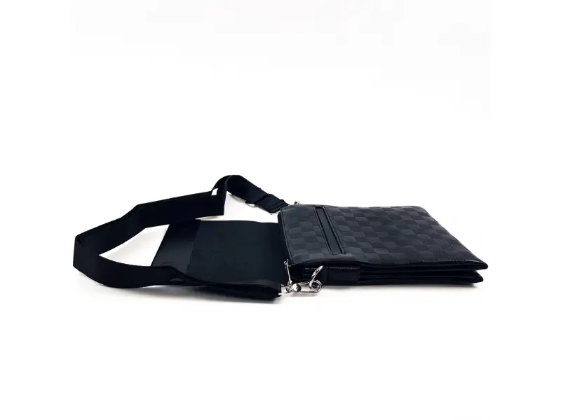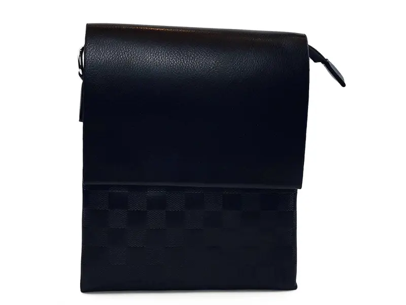 Geantă bărbătească medie, model pătrat - piele ecologică. Geantă bărbătească elegantă, confecționată din piele ecologică cu pătrate. Geantă bărbătească neagră, cu clapă mică și piele ecologică de calitate, de la magazinul online ePazar.bg