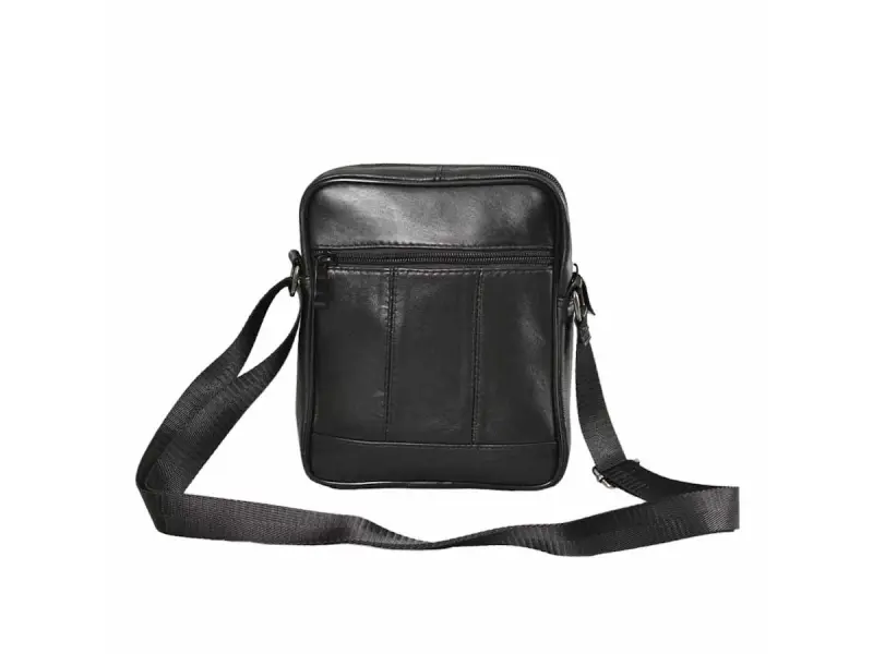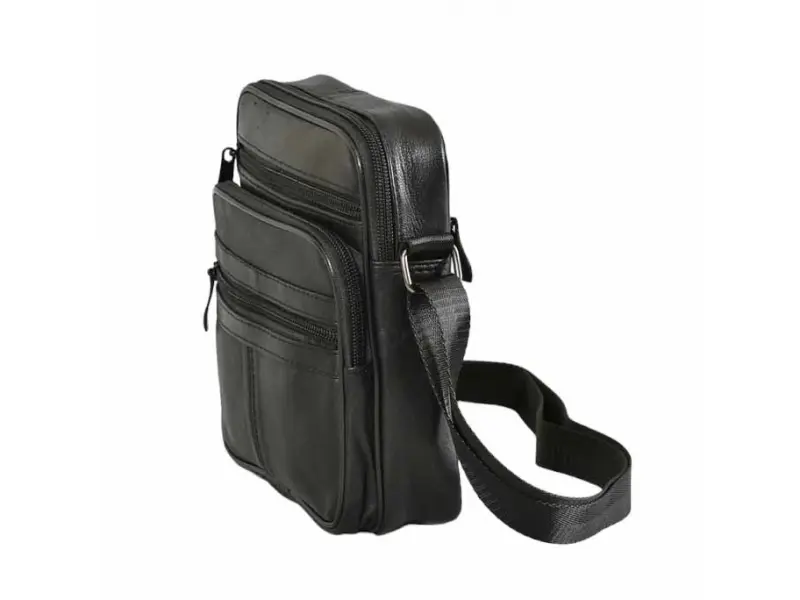 Geantă bărbătească din piele cu multe compartimente - Un compartiment principal cu fermoar. - Trei buzunare frontale cu fermoar. - Buzunar spate cu fermoar. - Curea de umăr reglabilă.