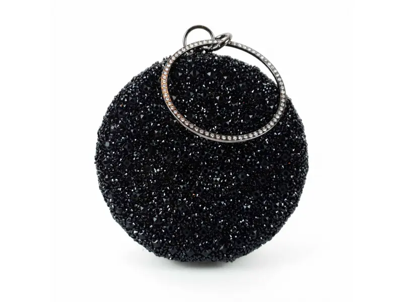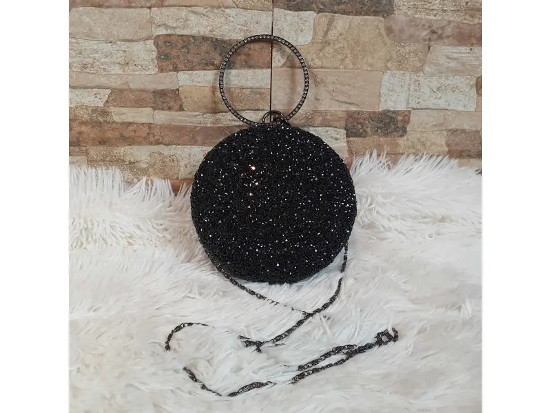 Geantă rotundă neagră strălucitoare