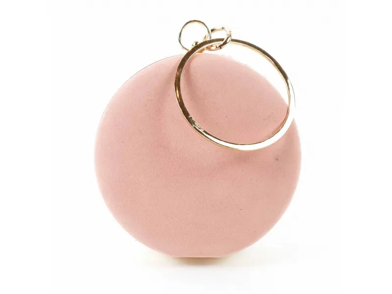 Geantă rotundă roz strălucitor. Geantă rotundă formală în culoarea roz. Geantă elegantă cu mâner suplimentar pentru mână cu margine aurie - ePazar.bg