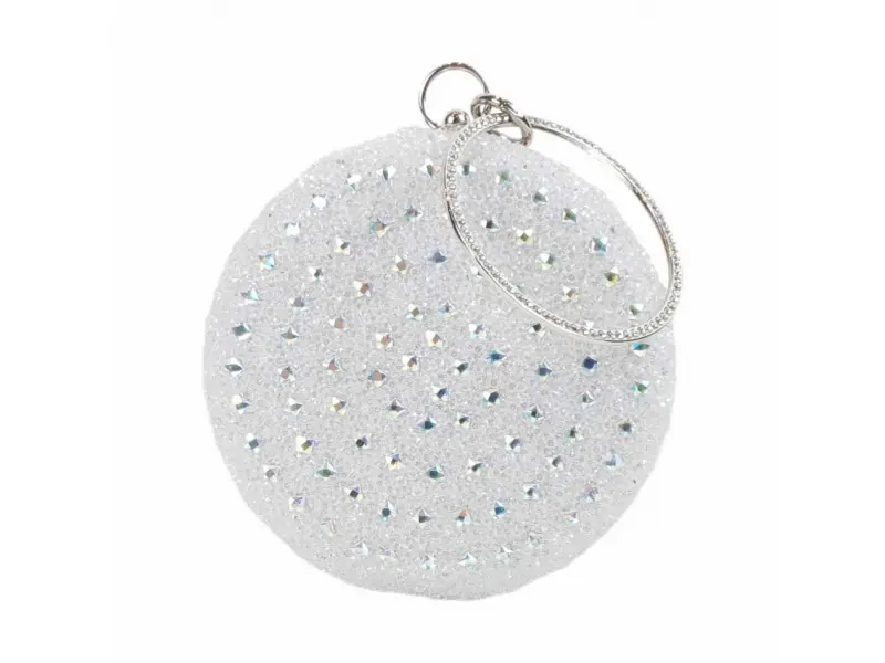 Geantă rotundă strălucitoare, model cameleon. Geantă rotundă de bal, albă, cu spate cameleon. Geantă elegantă modernă cu pietre, potrivită pentru balul de absolvire. - ePazar.bg
