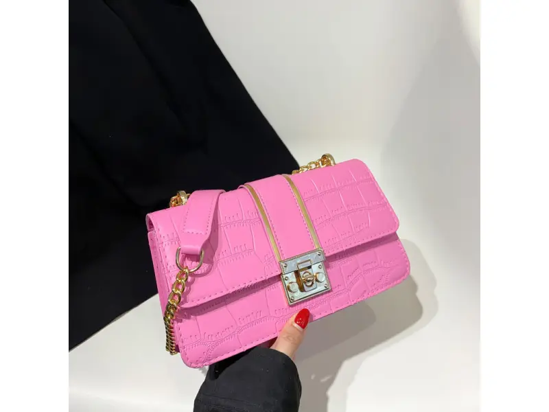 Geantă frumoasă - Geantă mică din piele ecologică. - Un compartiment principal cu capac. - Mâner lung confortabil, de tip lanț, combinat cu piele ecologică.