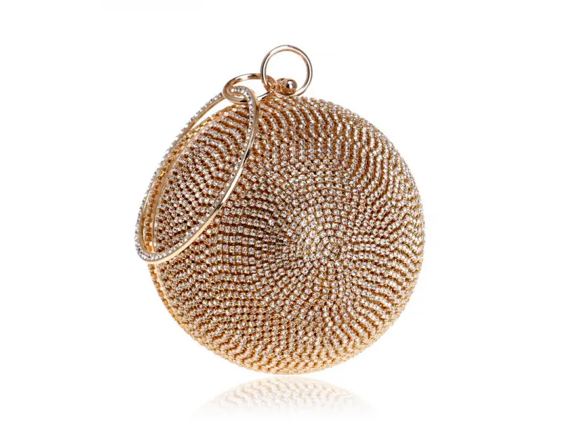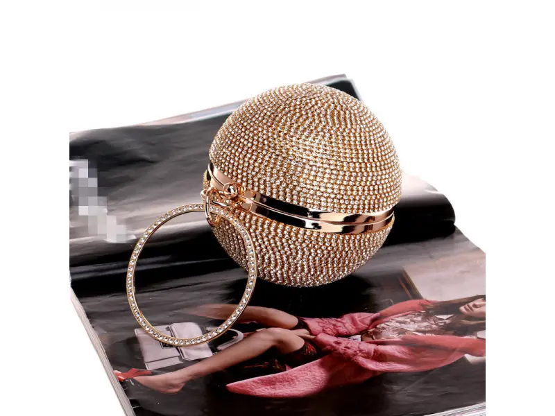 Geantă de absolvire în formă de bilă - Geantă de mână formală cu un singur compartiment. - Deschidere și închidere cu mecanism. - Margine aurie. - Mâner pentru transport în mână. - Mâner lung de tip lanț.