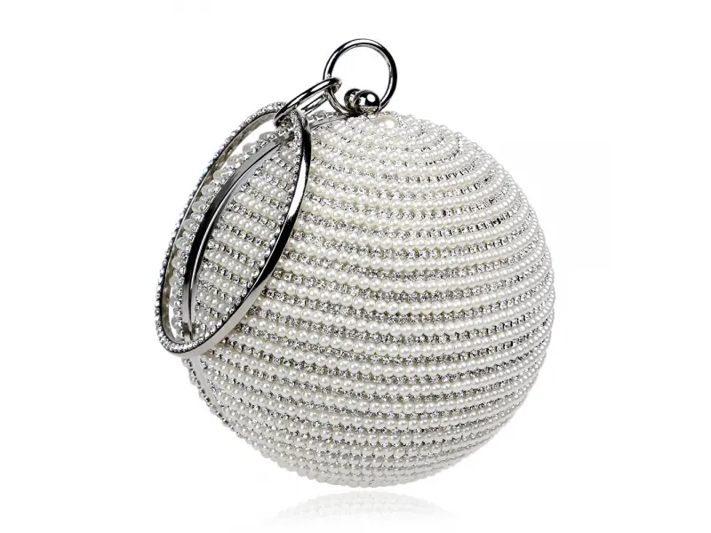 Geantă de seară sferică - Geantă de mână formală cu un singur compartiment. - Deschidere și închidere cu mecanism. - Margine argintie. - Mâner pentru transport în mână. - Mâner lung de tip lanț.