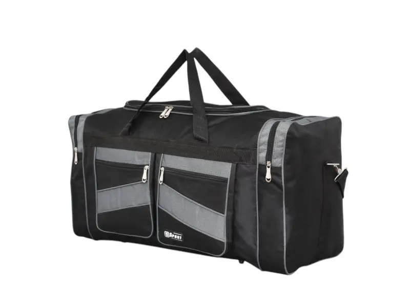 Geantă sport de înaltă calitate, cu o lungime de 60 cm, cu compartimente practice și fermoare rezistente. Geantă neagră din material de calitate, cu mânere confortabile și un mâner suplimentar lung.