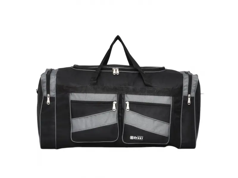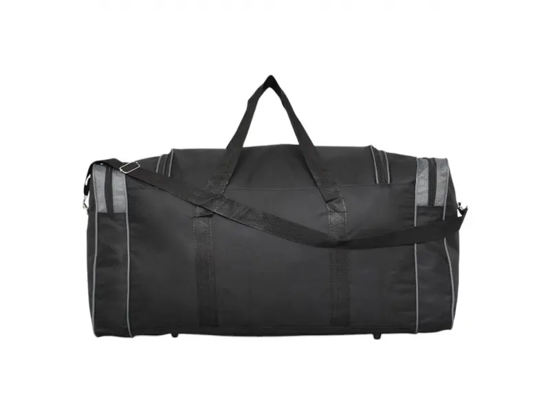 Geantă sport mare - Geantă din material textil. - Un compartiment principal cu fermoar bidirecțional. - Două buzunare frontale cu fermoar. - Două buzunare laterale. - Patru picioare. - Mânere confortabile pentru transport în mână. - Mâner lung reglabil.