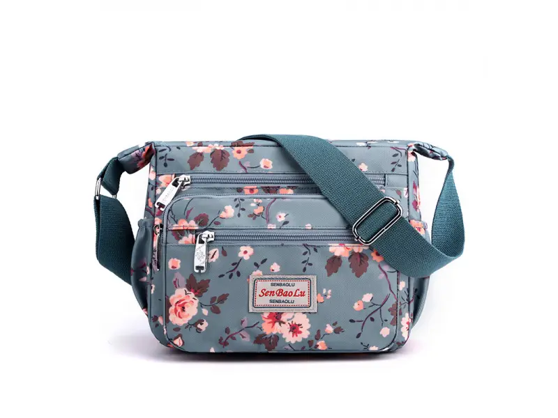 Geantă de mână de calitate - Geantă de damă confecționată din material textil. - Un compartiment principal cu fermoar. - Trei buzunare frontale cu fermoar. - Buzunar spate cu fermoar. - Două buzunare laterale. - Buzunar interior mic cu fermoar. - Compartiment pentru telefon și documente. - Mâner lung, reglabil.