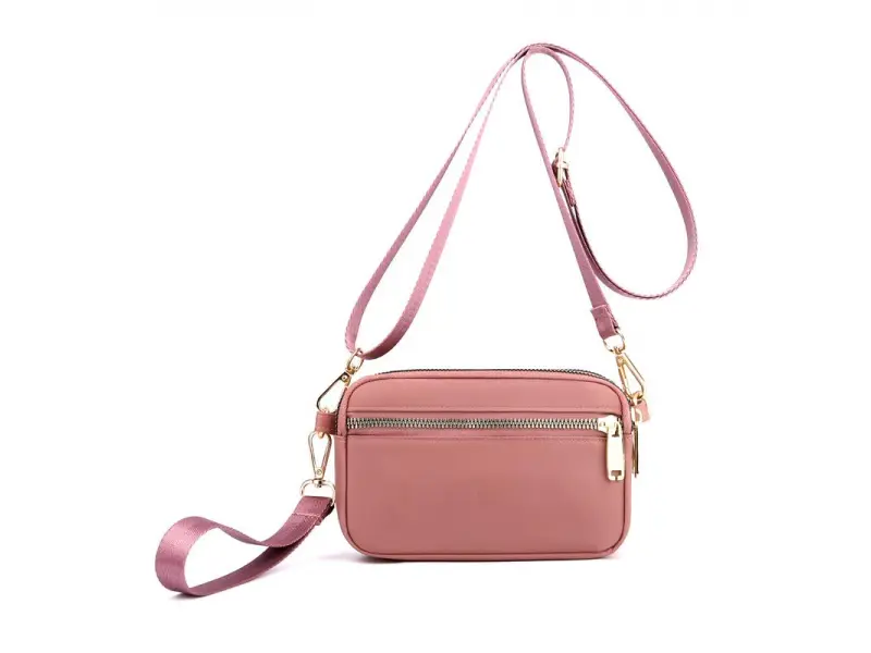 Geantă textilă mică de calitate - Geantă mică din material textil. - Trei compartimente principale cu fermoar. - Buzunar frontal cu fermoar. - Buzunar spate cu fermoar. - Mâner lung și reglabil, confortabil. - Mâner pentru transport în mână.
