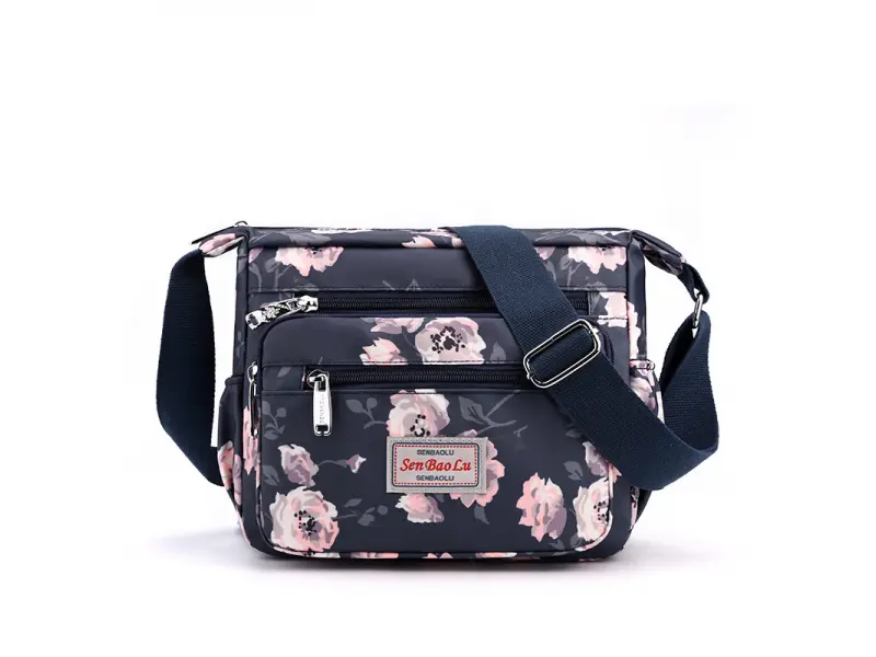Geantă confortabilă - Geantă de damă confecționată din material textil. - Un compartiment principal cu fermoar. - Trei buzunare frontale cu fermoar. - Buzunar spate cu fermoar. - Două buzunare laterale. - Buzunar interior mic cu fermoar. - Compartiment pentru telefon și documente. - Mâner lung, reglabil.