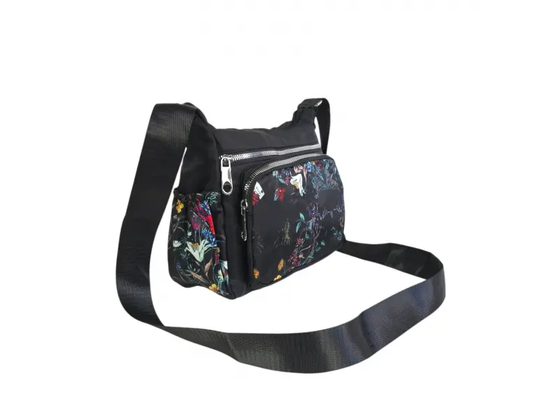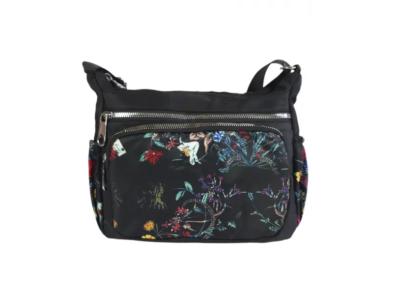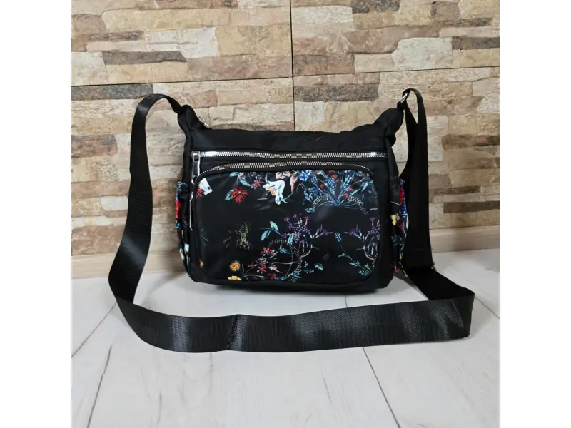 Geantă confortabilă - Geantă de mână din material textil. - Un compartiment principal cu fermoar. - Două buzunare frontale cu fermoar. - Buzunar spate cu fermoar. - Două buzunare laterale. - Buzunar interior mic cu fermoar. - Mâner lung, reglabil.