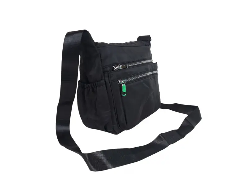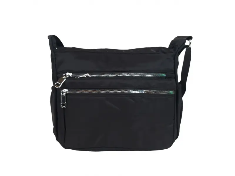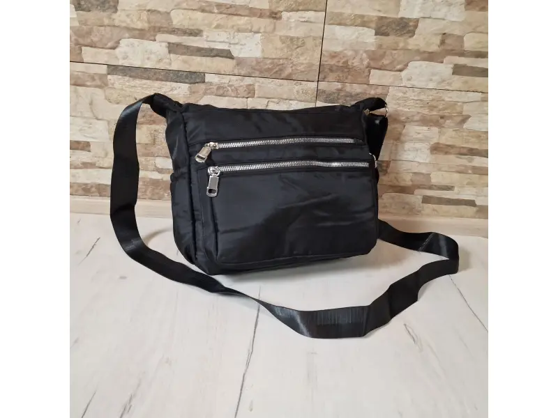 Geantă textilă pentru femei cu multe compartimente - Geantă de damă confecționată din material textil. - Un compartiment principal cu fermoar. - Buzunar interior mic cu fermoar. - Compartiment pentru telefon și documente. - Trei buzunare frontale cu fermoar. - Buzunar spate cu fermoar. - Două buzunare laterale. - Mâner lung, reglabil.