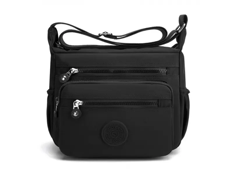 Geantă de mână de dimensiuni medii, de zi cu zi - Geantă de damă confecționată din material textil. - Un compartiment principal cu fermoar. - Trei buzunare frontale cu fermoar. - Buzunar spate cu fermoar. - Două buzunare laterale. - Buzunar interior mic cu fermoar. - Compartiment pentru telefon și documente. - Mâner lung, reglabil.