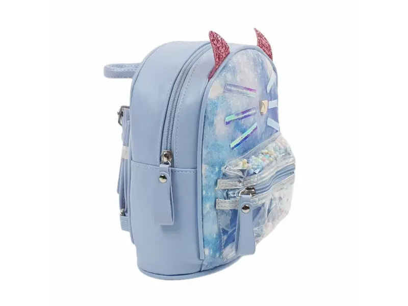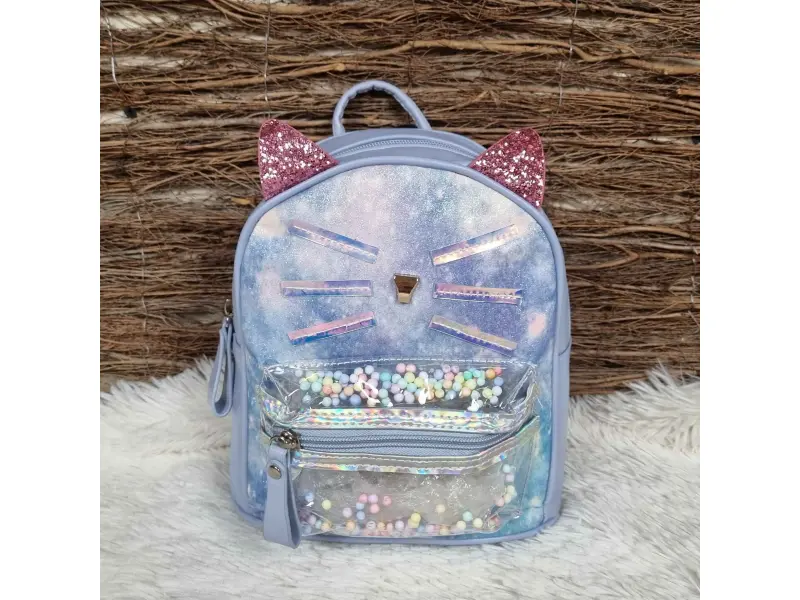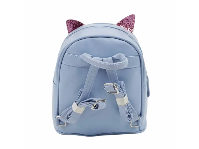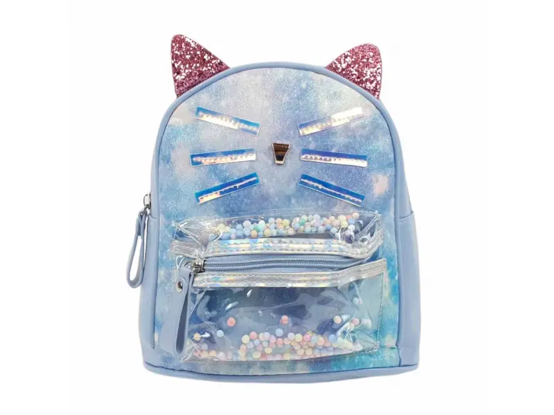 Rucsac confortabil pentru copii, de culoare albastră - pisicuță. Rucsac pentru copii cu un compartiment mare închis cu fermoar, un buzunar interior mic și un buzunar frontal cu fermoar. Rucsac cu bretele reglabile și mâner de transport.