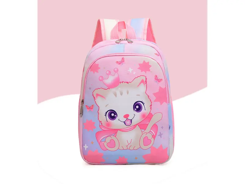 Ghiozdan modern pentru copii cu o pisicuță într-o frumoasă culoare roz. Ghiozdan modern cu compartimente confortabile și bretele reglabile. Ghiozdan frumos pentru copii, potrivit pentru grădiniță.