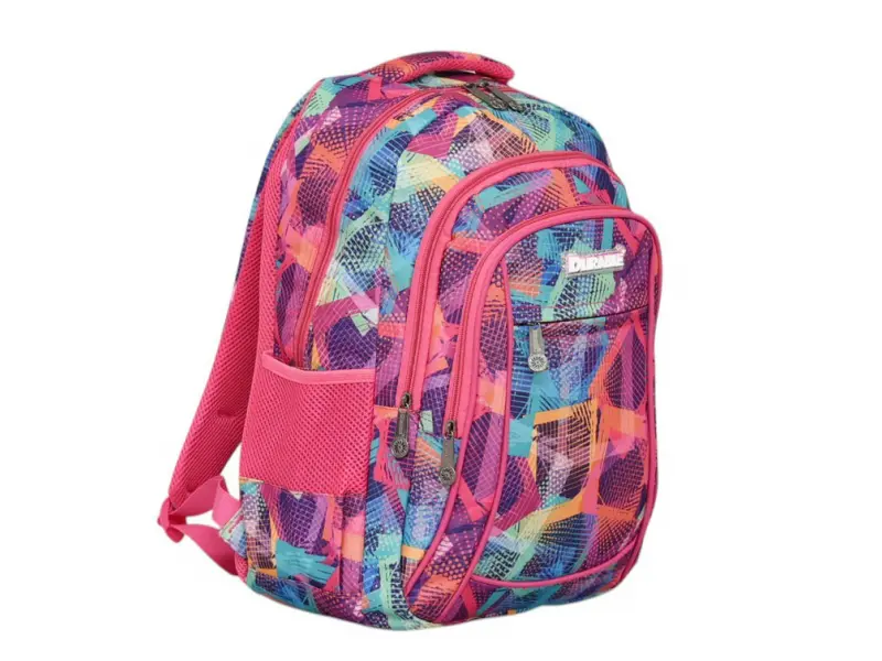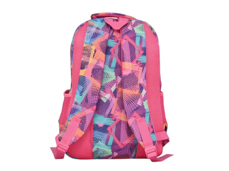 Ghiozdan școlar cu spate confortabil - Rucsac frumos pentru școală sau sport. - Un compartiment principal cu fermoar. - Trei buzunare frontale cu fermoar. - Compartimente laterale pentru sticle. - Mâner pentru transport în mână. - Bretele reglabile.