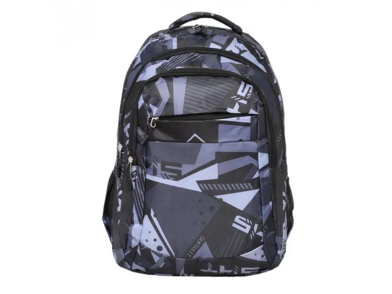 Rucsac modern cu multe compartimente - Rucsac pentru școală sau sport. - Două compartimente principale cu fermoar. - Două buzunare frontale cu fermoar. - Compartimente laterale pentru sticle. - Spate confortabil și respirabil. - Mâner pentru transport în mână. - Bretele reglabile.