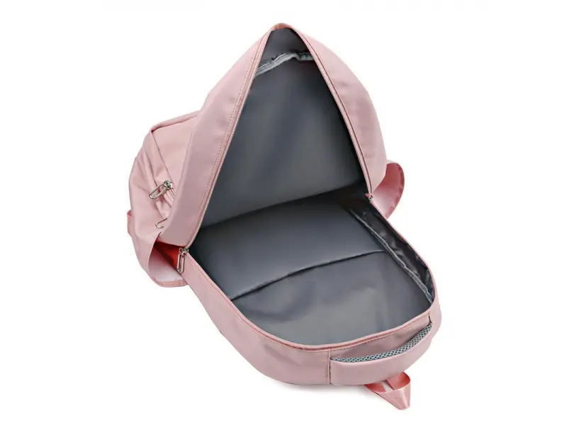 Ghiozdan roz potrivit pentru școală - Rucsac mare pentru școală sau sport. - Două compartimente cu fermoar. - Buzunar interior fără fermoar. - Două buzunare frontale cu fermoar. - Compartimente laterale pentru sticle. - Mâner pentru transport în mână. - Bretele reglabile.