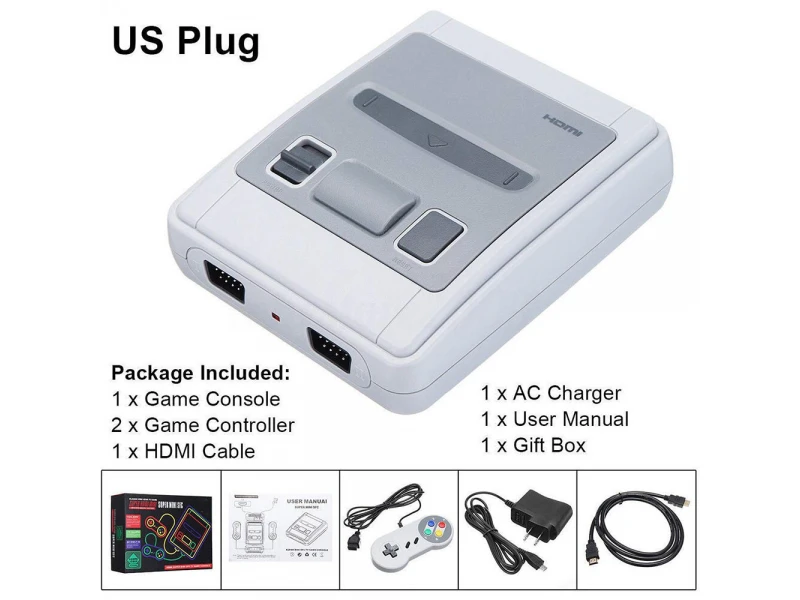 Super Mini SFC aruncă o privire nostalgică înapoi în anii '90. Consola vine acum cu 620 de jocuri instalate, fără opțiunea de a suporta mai multe. În ciuda dimensiunilor sale mici, însă, aveți suficient spațiu pentru salvare, iar Super Mini SFC promite că veți putea continua de unde ați rămas ultima dată. Nu va mai trebui să vă faceți griji cu privire la calitatea imaginii, deoarece jocul are HDMI. O parte din Jocuri sunt: 1. Super Mario 2. Tancuri 3. Monopolul 4. Baschet 5. Păsări furioase 6. Ardere cu argilă 7. Orașul de luptă 8. PacMan 9. Doom 10. Donkey Kong 12. Tir cu armă 13. Prințul Persiei 14. Mortal Kombat 15. Fotbal 16. Contra + încă 600 de jocuri Kitul conține: 1 x Consolă - Super Mini SFC 2 x Joystick-uri multifuncționale pentru jocuri - 2 bucăți 1 x HDMI pentru conectarea la un televizor sau monitor 1 adaptor de alimentare de 220V