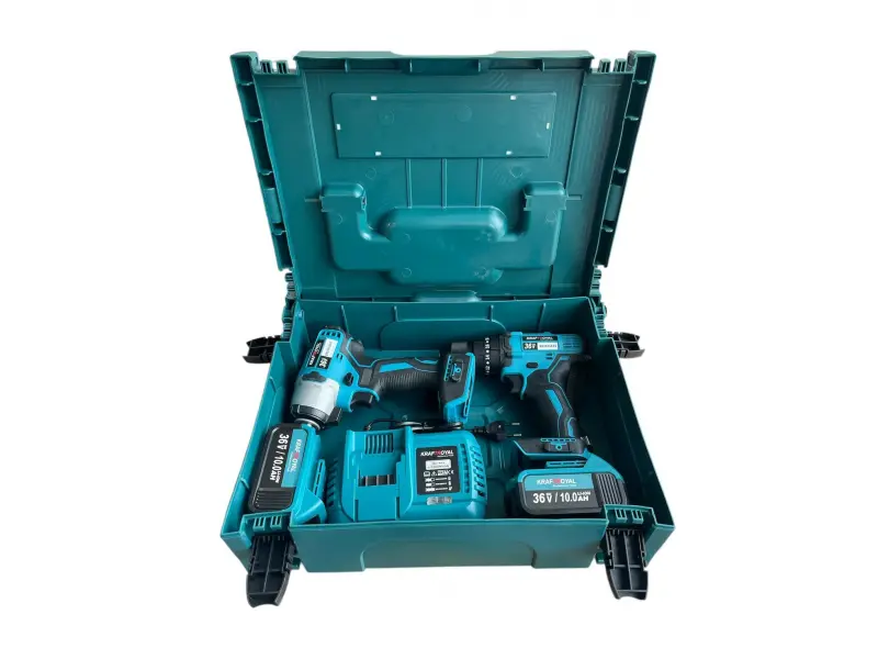 Descoperiți puternicul set de șurubelnițe cu impact și acumulator fără perii KraftRoyal de 36V și 8Ah, de culoare albastră - ideal pentru reparații profesionale și casnice. Durată lungă de viață a bateriei, performanță ridicată și ușurință în utilizare. Comandați acum și simplificați fiecare sarcină! 🔧