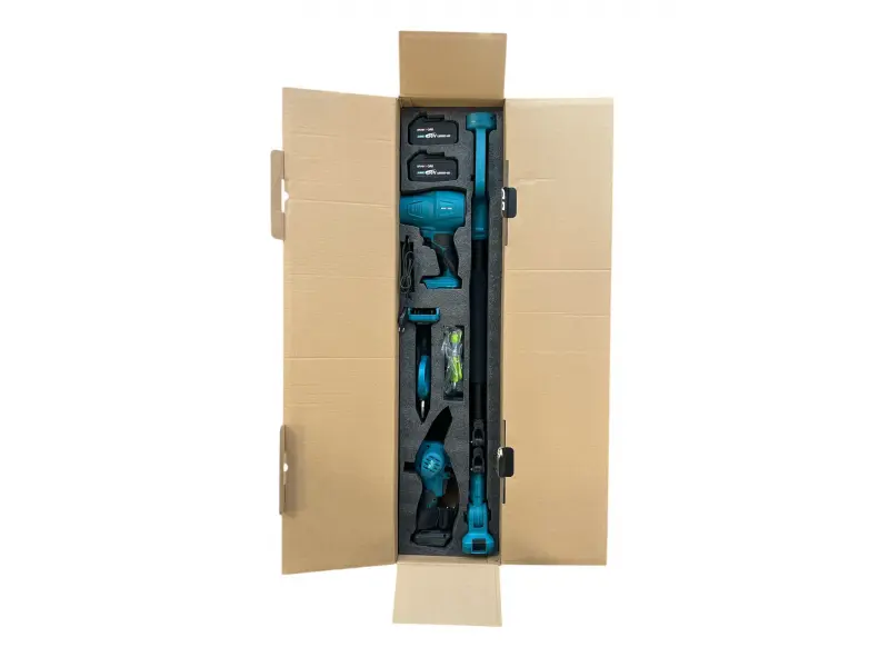 Descoperă puternicul set 4 în 1: suflantă fără fir, foarfecă, cuțit de 15 cm cu filtru de ulei și tijă telescopică de 36V 8.0A. Întreține-ți cu ușurință grădina, economisește timp și efort! Comandă acum și bucură-te de confortul de acasă. 🌿