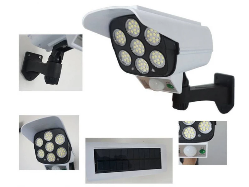 - Simulare 2 în 1 cu lumină solară și cameră de securitate - Protejați-vă casa de intruși. Cu 77 de LED-uri luminoase activate de mișcare și un design elegant, discret. Plus o simulare realistă a camerei de securitate.