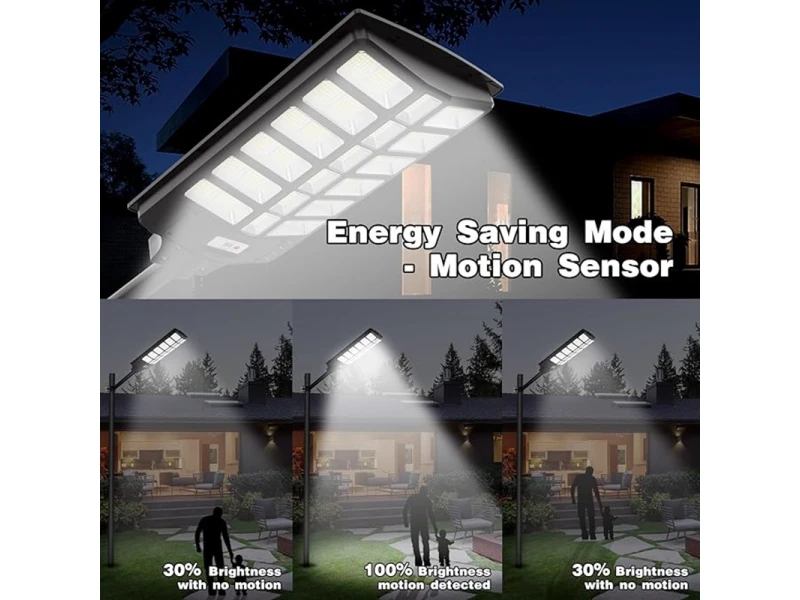 Această lampă solară LED LYLU de 1800W oferă iluminare maximă cu 936 de diode COB și luminozitate ridicată . Concepută pentru condiții meteorologice extreme , este o soluție ideală pentru iluminarea străzilor, curților, parcărilor și siturilor industriale , asigurând eficiență și economie de energie . Caracteristici principale: ✔ Număr de diode: 936 – iluminare ultra-strălucitoare cu lumină de 6500K (alb rece, fără tentă galbenă). ✔ Putere COB: 1800W – iluminare puternică pentru spații mari. ✔ Iluminare cu unghi larg: distribuție bidirecțională de 220° pentru o rază de acțiune mai mare . ✔ Număr de secțiuni: 30 – iluminare uniformă fără zone întunecate . ✔ Rezistență la apă: IP65 – rezistent la ploaie, zăpadă și condiții meteorologice extreme. ✔ Interval de temperatură: de la -20°C la +65°C – potrivit pentru orice climat. ✔ Material durabil: PVC / ABS - rezistent la impact și coroziune. ✔ Dimensiuni: 74,93 x 35 x 7,5 cm – dimensiuni mari pentru o iluminare mai bună a spațiilor mai mari . Moduri de funcționare inteligente: Mod senzor de mișcare – lampa se aprinde la luminozitatea de 100% atunci când este detectată mișcare și scade la 30% după 15 secunde . Mod de la amurg la zori – pornire automată la amurg și oprire automată la răsărit . Mod de sincronizare – setare a orei prin telecomandă : 2/3/5/6/8 ore , precum și reglare a luminozității de la 25% la 100% . De ce să alegeți LYLU 1800W? ✔ Funcționează în întregime cu energie solară - nu necesită energie electrică . ✔ Potrivit pentru spații mari – ideal pentru străzi, parcări, șantiere și zone deschise . ✔ Instalare și întreținere ușoară – nu sunt necesare cabluri suplimentare. Cu energie solară și inovație, asigură o iluminare eficientă și puternică!