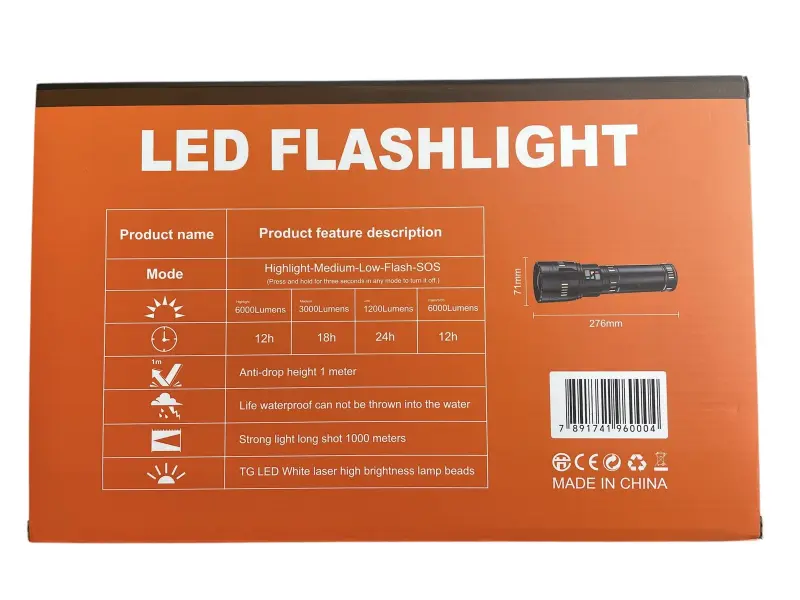 Lanternă YEMAO YM-G600 – lanternă LED puternică cu rază lungă de acțiune de până la 1000 m 🔦⚡ YEMAO YM-G600 este o lanternă de înaltă performanță, cu lumină extrem de puternică și concentrată, potrivită pentru camping, vânătoare, pescuit, securitate, lucrări în aer liber și situații de urgență . Este dotată cu bile laser albe LED TG cu luminozitate ridicată, care oferă o vizibilitate excelentă și o „rază” lungă de lumină de până la 1000 de metri . ✅ Moduri de funcționare (5 moduri) Lanterna oferă moduri convenabile pentru diferite situații: ✔️ Bliț (lumină puternică) ✔️ Lumină medie ✔️ Lumină slabă ✔️ Fulger ✔️ Mod SOS 📌 Caracteristică importantă: ➡️ Apăsați și țineți apăsat butonul timp de 3 secunde în orice mod pentru a opri lanterna. 💡 Putere și timp de funcționare Lanterna combină luminozitatea puternică și economia de energie în funcție de modul selectat: Lumină puternică: 6000 lumeni – până la 12 ore Lumină medie: 3000 lumeni – până la 18 ore Lumină slabă: 1200 lumeni – până la 24 de ore Bliț / SOS: 6000 lumeni – până la 12 ore 🔋 Baterie și autonomie Kitul include 4 baterii cu o capacitate totală de 6000 mAh , care asigură funcționare pe termen lung cu o singură încărcare și fiabilitate în timpul utilizării prelungite. ✅ 4 celule de baterie – total 6000 mAh ✅ Potrivit pentru călătorii lungi și lucru fără acces la electricitate 🛡️ Forță și protecție YEMAO YM-G600 este conceput pentru utilizare în condiții reale și este rezistent la influențe externe: ✔️ Protecție la căderi de la 1 metru ✔️ Carcasă impermeabilă – potrivită pentru ploaie și medii umede ✔️ Construcție robustă pentru o durată de viață mai lungă 🔭 Lumină cu rază lungă de acțiune și puternic focalizată Lanterna oferă un fascicul luminos de până la 1000 de metri , ceea ce o face o alegere excelentă pentru: ✅ orientare într-un spațiu întunecat ✅ căutarea și iluminarea obiectelor îndepărtate ✅ securitate și patrulare ✅ drumeții și aventuri nocturne ⭐ Avantaje dintr-o privire ✅ Lumină puternică de până la 6000 lumeni ✅ Rază de acțiune de până la 1000 m ✅ 5 moduri + SOS ✅ Baterie de 6000 mAh (4 celule) ✅ Rezistent la apă și șocuri (1 m) ✅ Oprire convenabilă cu o menținere de 3 secunde