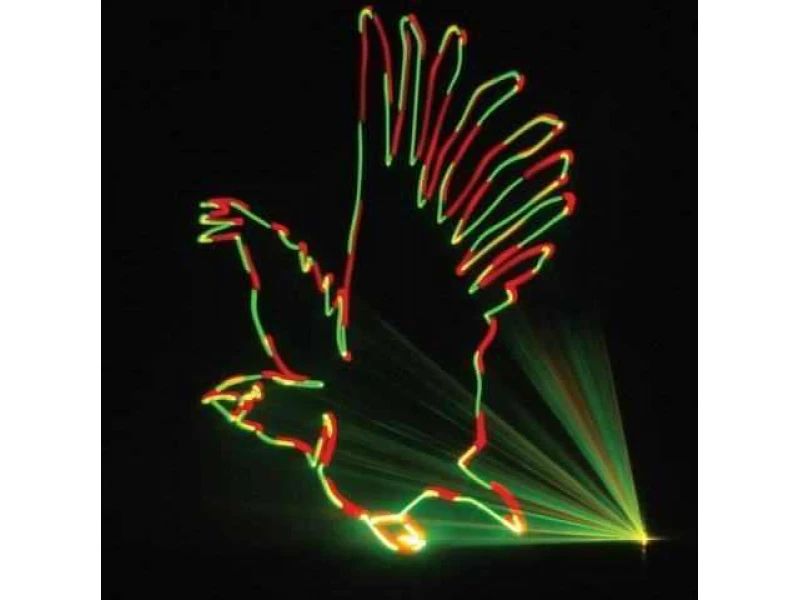 Laserul proiectează simultan imagini în trei culori - verde, roșu și galben (culori RG complementare)