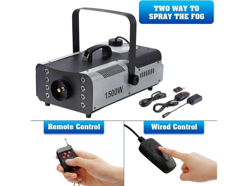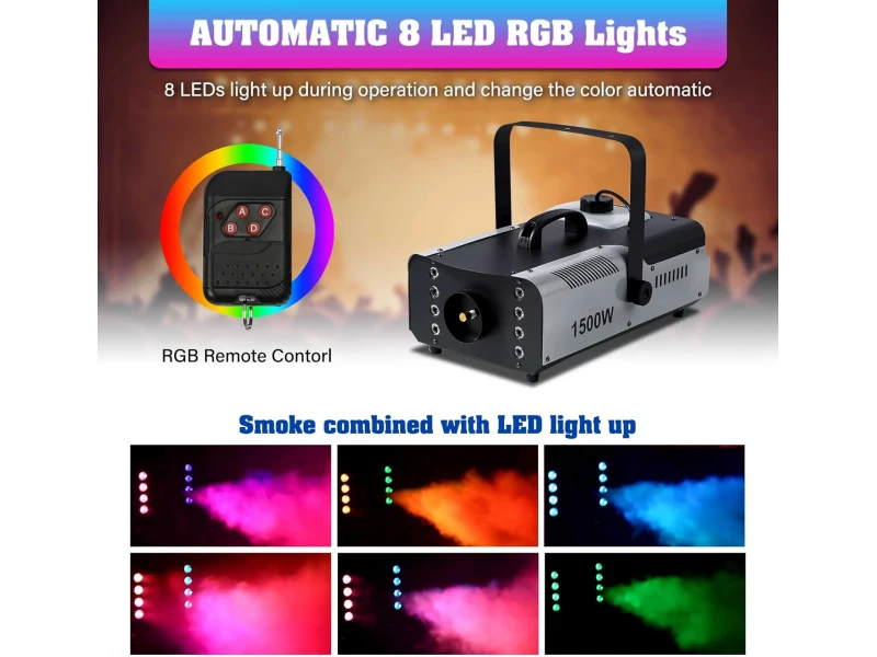 • Mașină de fum 1500W cu diode LED și telecomandă