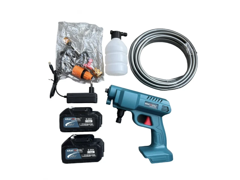 • Mașină de spălat cu presiune fără fir KraftRoyal 36v cu 2 baterii 8Ah