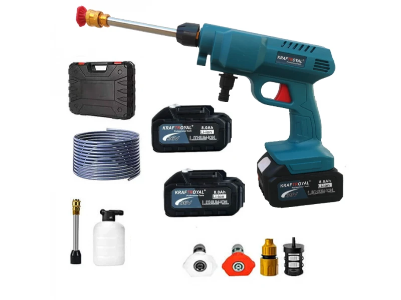 Aparat de spălat cu presiune fără fir KraftRoyal 36V cu 2 baterii 8Ah – Curățare puternică și convenabilă fără cabluri