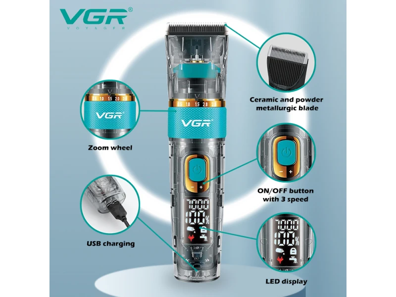 Mașină de tuns fără fir cu bază de încărcare VGR V-682