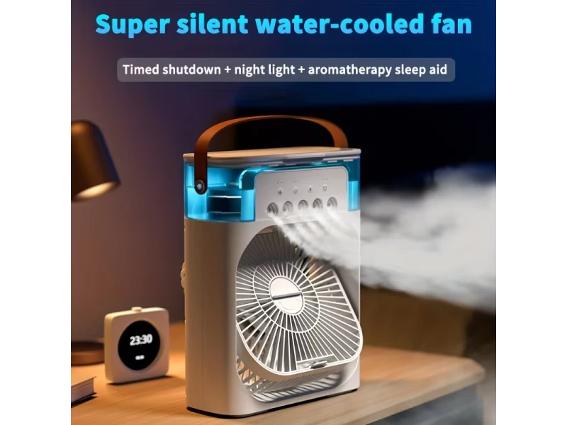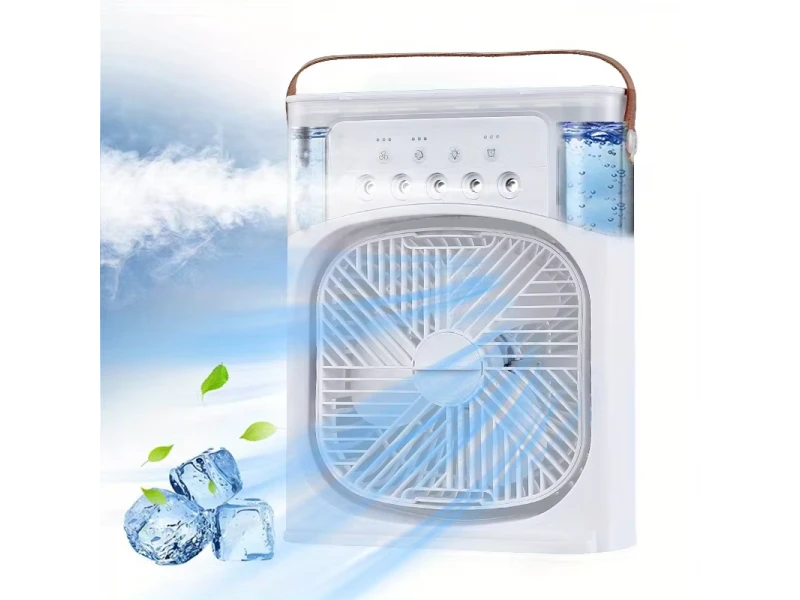 Acest mini ventilator portabil 3 în 1 combină funcțiile de ventilator, umidificator și răcitor. Cu o singură apăsare de buton, puteți selecta funcția dorită sau le puteți combina pentru un confort maxim.