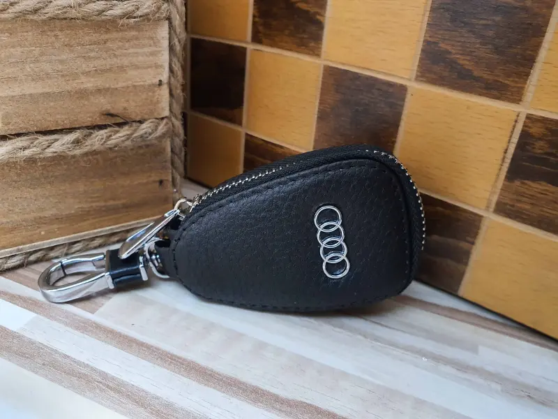 Breloc din piele naturală de înaltă calitate, cu fermoar argintiu ușor de deschis. Un cadou minunat pentru fanii și posesorii mărcii auto Audi.