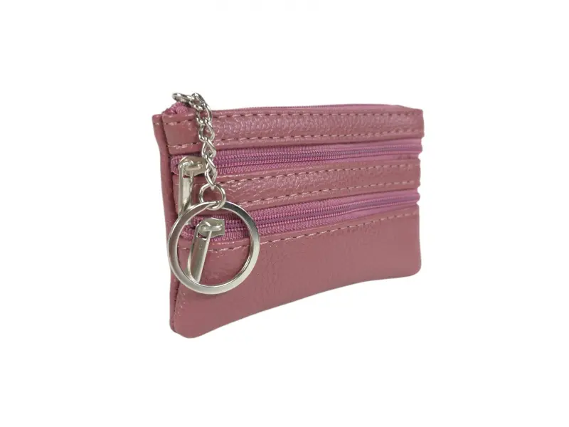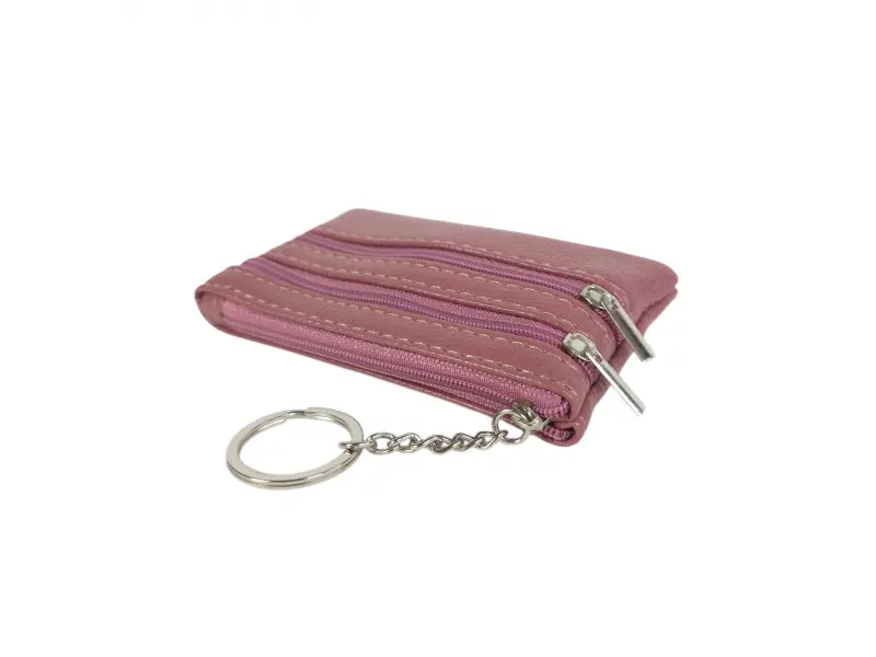Breloc din piele, de culoare roz - Poșetă din piele naturală cu inel de chei. - Compartiment pentru bancnote. - Două compartimente pentru monede. - Inel de chei.