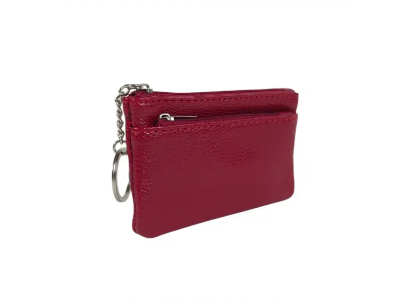 Breloc de calitate în culoarea bordo - Poșetă din piele naturală cu inel de chei. - Compartiment pentru bancnote. - Compartiment pentru monede. - Inel de chei.