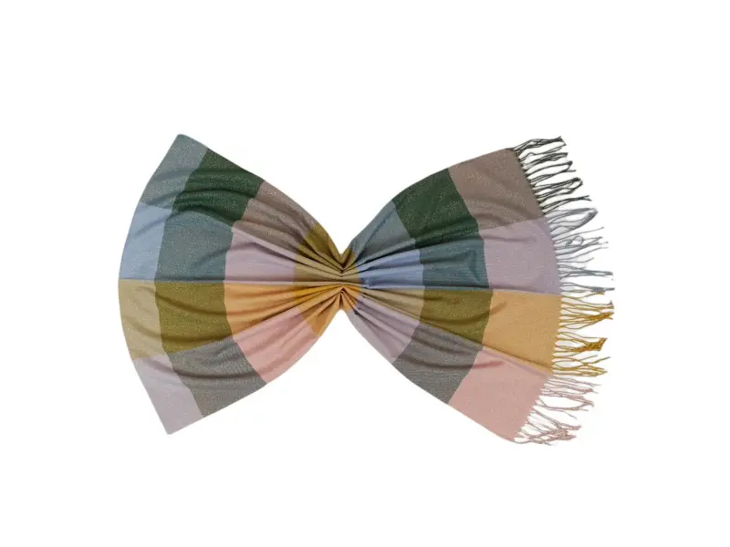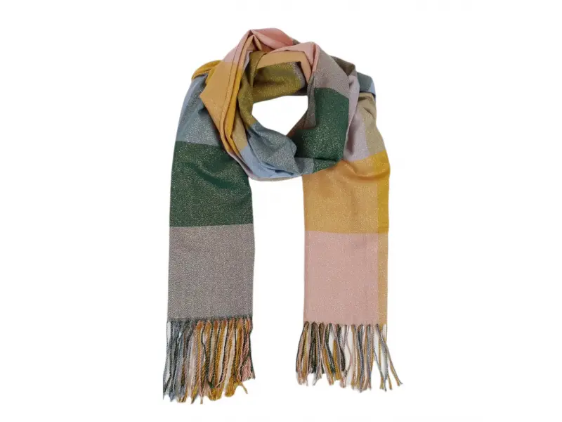 Eșarfă de damă moale și confortabilă, cu o combinație interesantă de culori. Eșarfa este confecționată dintr-o combinație de 70% bumbac și 30% fir metalic.