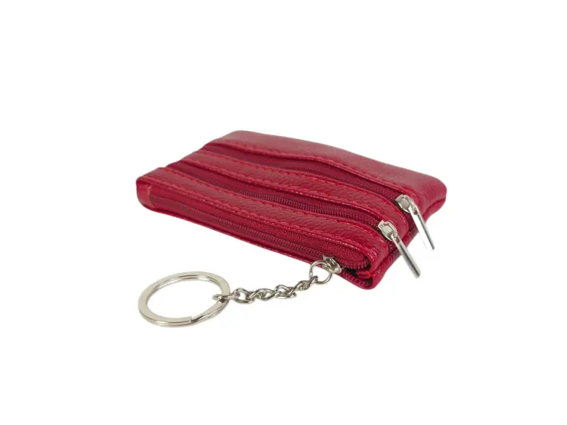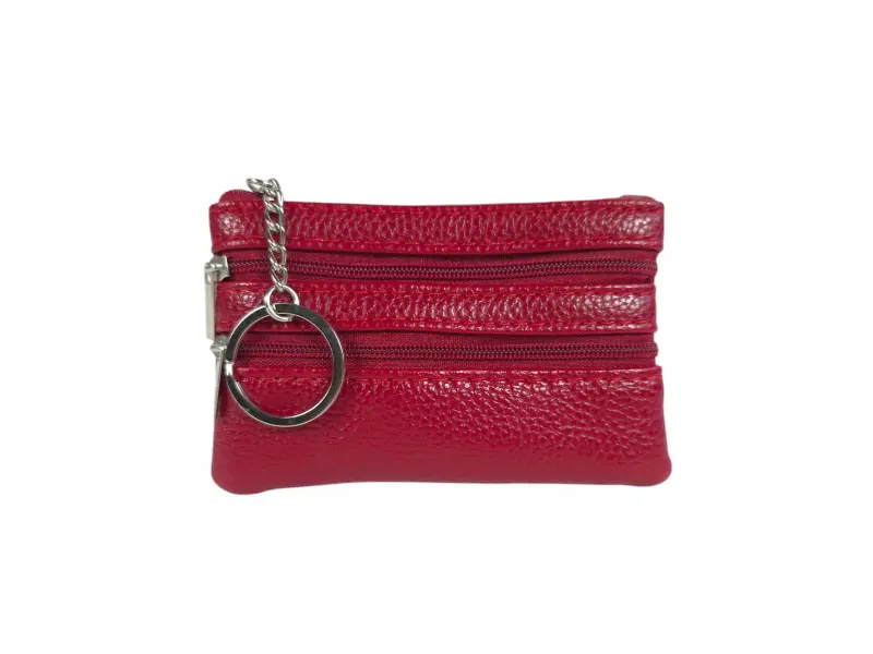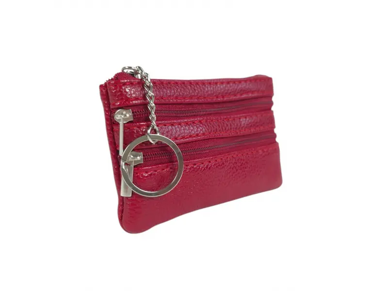 Breloc din piele bordo - Poșetă din piele naturală cu inel de chei. - Compartiment pentru bancnote. - Două compartimente pentru monede. - Inel de chei.