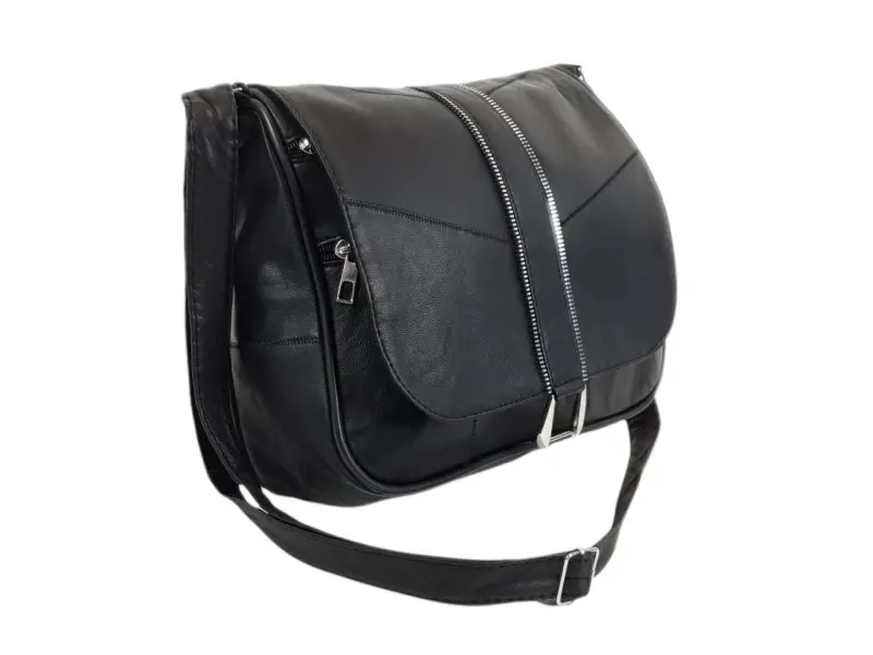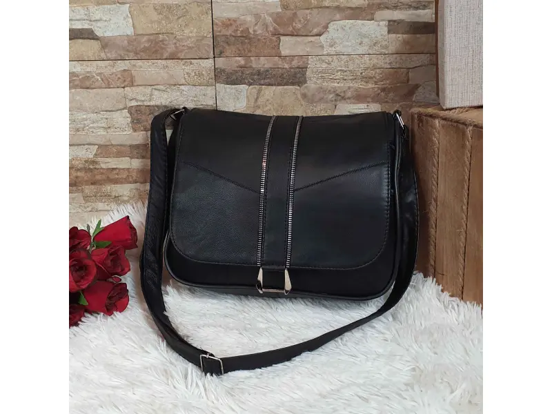 Geantă de damă de înaltă calitate, confecționată din piele naturală de miel. Geantă neagră cu un compartiment principal cu fermoar și închidere magnetică, un buzunar interior cu fermoar, un buzunar frontal sub clapă cu fermoar și un buzunar spate cu fermoar. Geantă confortabilă cu mâner lung reglabil.