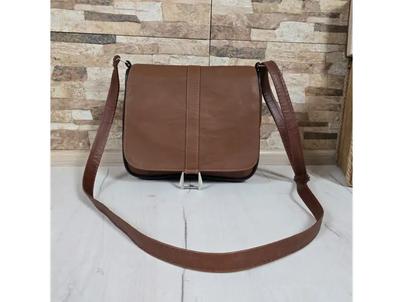 Geantă maro din piele naturală. Geantă mică cu compartimente practice cu fermoar și mâner lung reglabil. Geantă model nou din piele naturală.