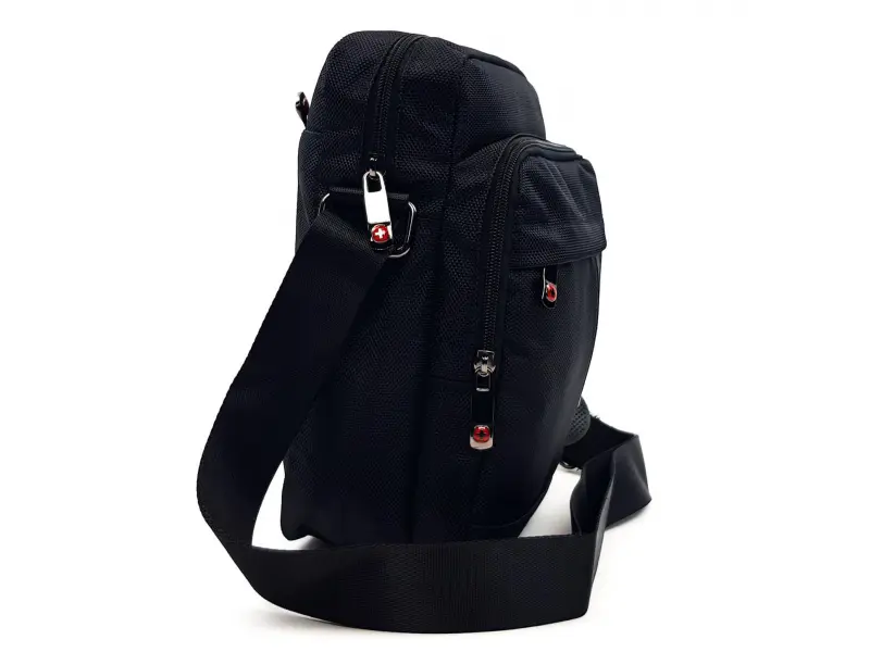Geantă bărbătească din material textil de calitate, cu mai multe compartimente și un mâner din poliester ușor reglabil. Geantă de umăr bărbătească mare, cu buzunar în spate, buzunar frontal, buzunar central și un buzunar mare cu buzunare interioare.