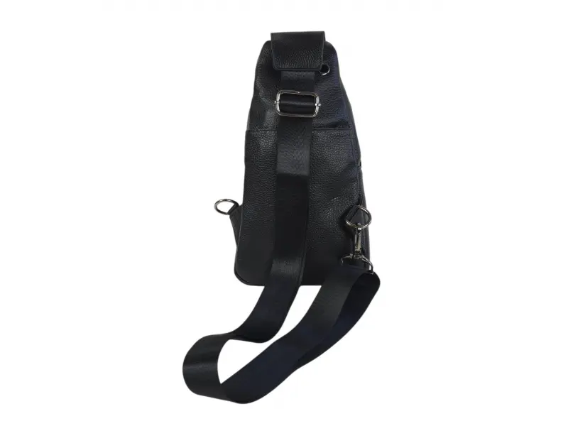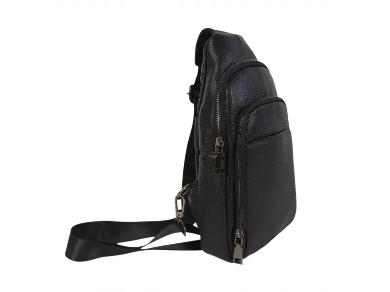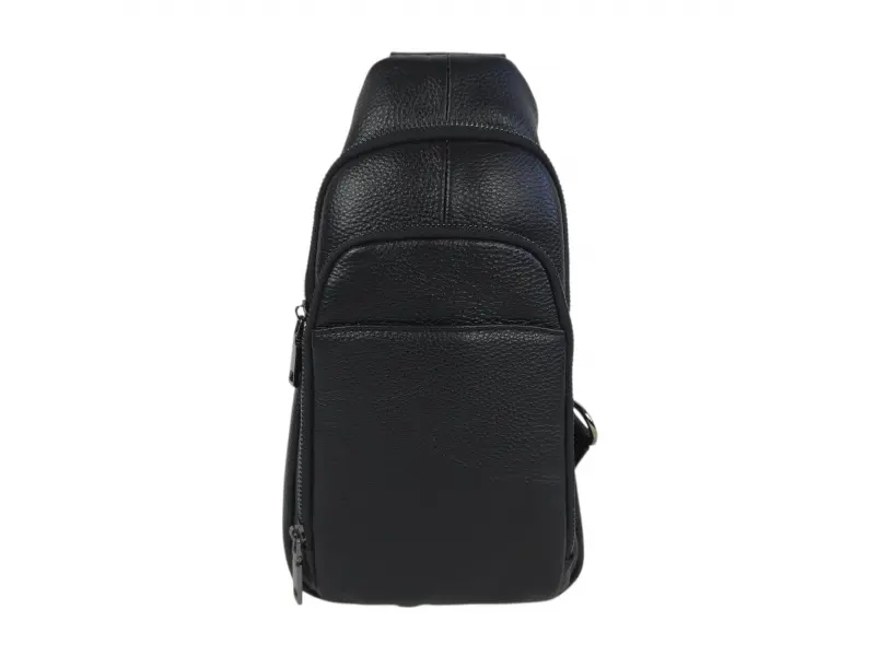 Geantă bărbătească din piele naturală de culoare neagră. O geantă crossbody care poate fi purtată și pe spate ca un rucsac. Geantă bărbătească din piele cu compartimente practice și fermoare rezistente, cu o curea de umăr confortabilă.