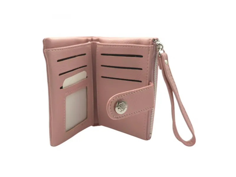 Poșetă frumoasă pentru femei - Portofel de damă confecționat din piele ecologică. - Închidere cu un buton de clic. - Compartimente pentru carduri. - Compartiment pentru bancnote. - Buzunar pentru monede cu fermoar.