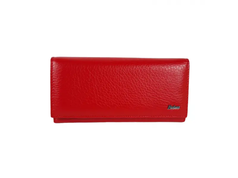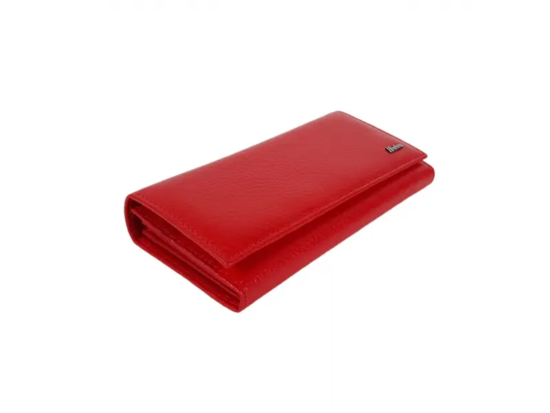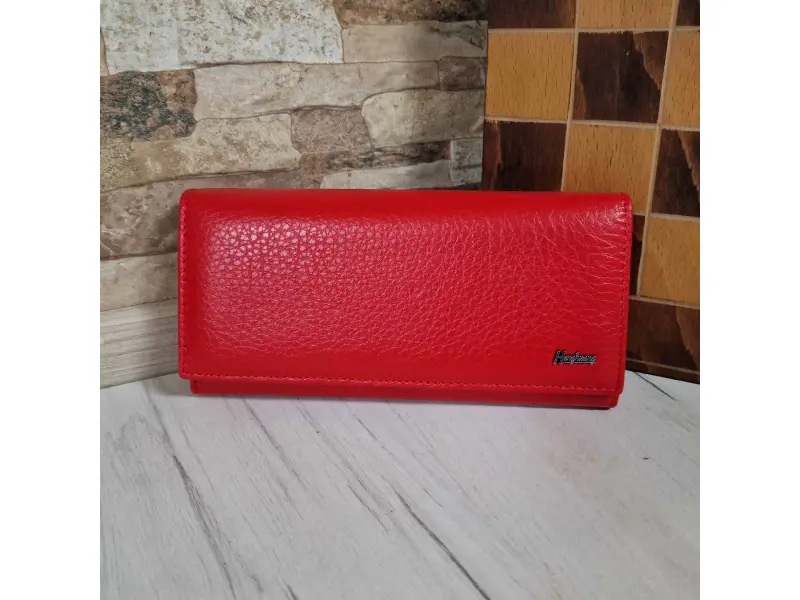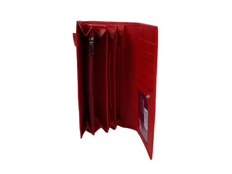 Poșetă din piele pentru femei - Poșetă roșie din piele naturală. - Închidere cu un buton de clic. - Compartimente pentru carduri și documente personale. - Compartiment pentru bancnote. - Portofel cu fermoar.