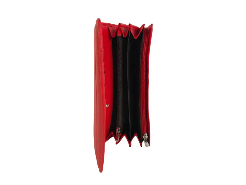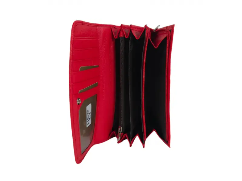 Cumpără acum un portofel roșu pentru femei, confecționat din piele naturală de calitate, la un preț redus. Portofel mare pentru femei, cu o dispunere convenabilă și multe sloturi pentru carduri și documente personale.