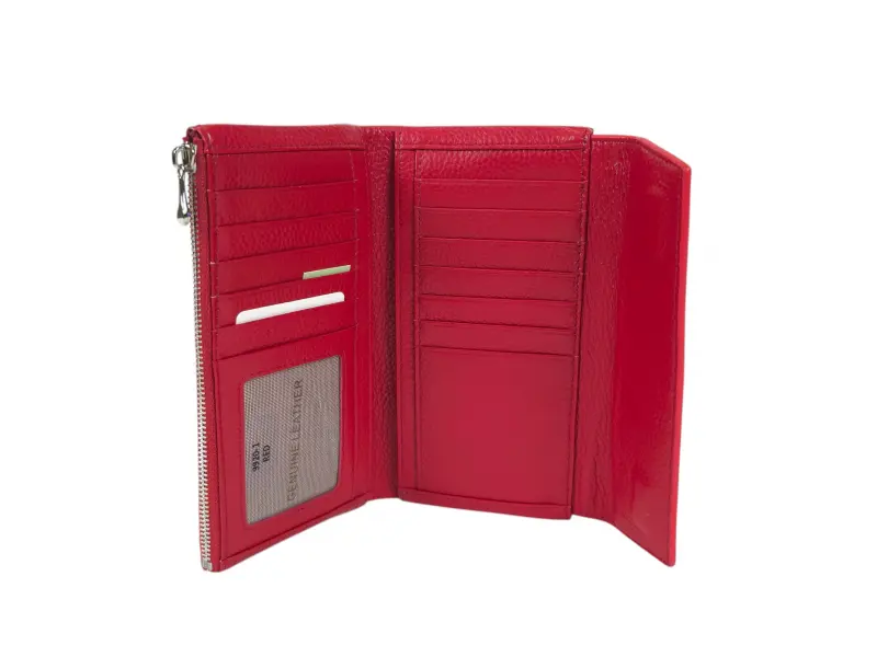 Poșetă colorată pentru femei - Poșetă de damă confecționată din piele naturală. - Închidere magnetică. - Compartimente pentru carduri. - Compartimente pentru bancnote. - Compartiment cu fermoar. - Buzunar exterior pentru monede cu fermoar.